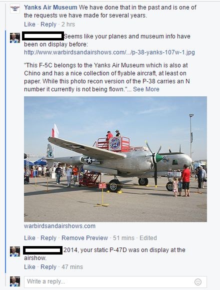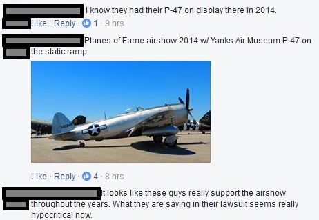 And of course, social media outlets like Facebook have been a focal point for support for Planes of Fame and angst towards Yanks Air Museum. Posts on the Yanks Air Museum Facebook page have been deleted, reviews on Yelp and Google Review have been one-starred and forums have been a buzz.