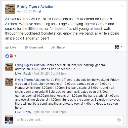 Seems that Flying Tiger Aviation has been open during the past two airshows and used the event to create additional revenue generating events outside of pumping gas.