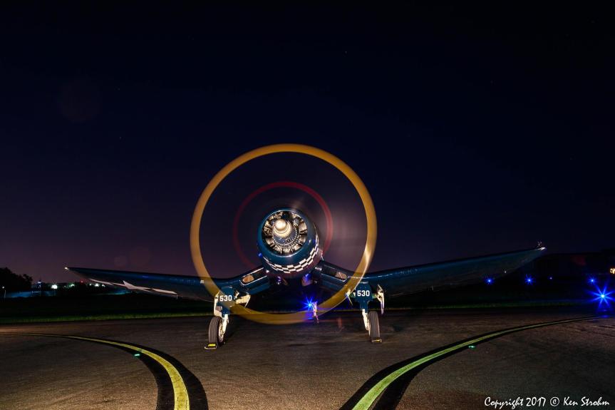 Last night, the Central Florida Aviation Photographers group hosted an event at the Warbird Adventures Museum in Kissimmee, that featured a nighttime engine run up of the CAF FG-1D Corsair from the Dixie Wing. There may be another event scheduled before it departs so I will try to let everyone know if it does.