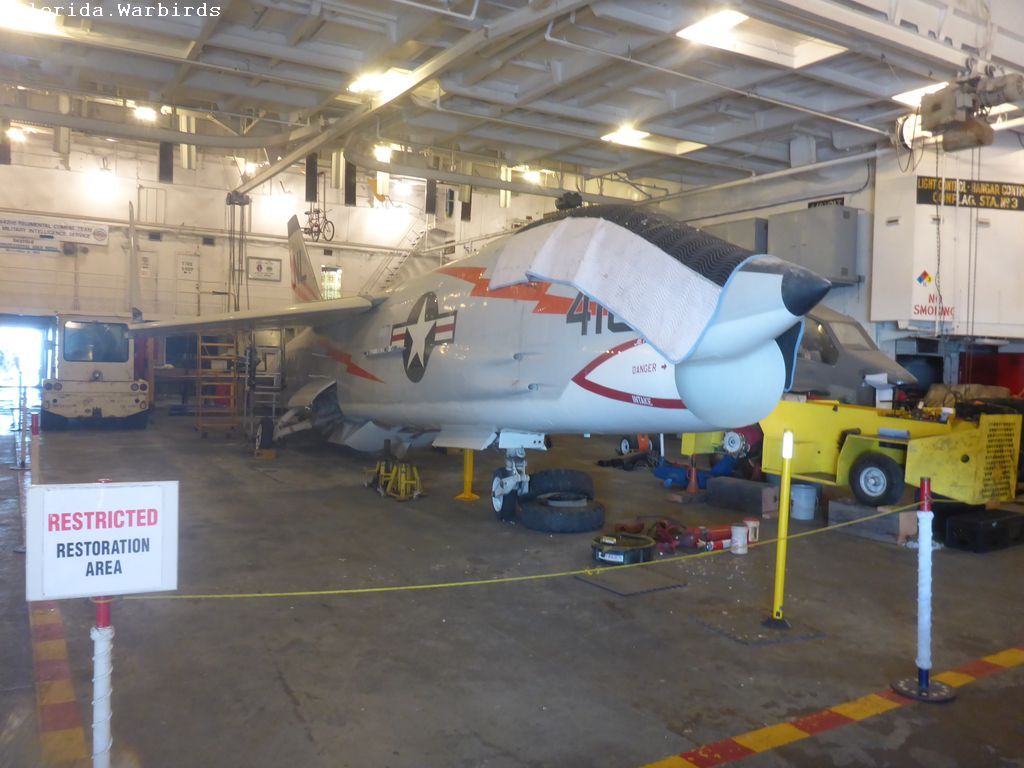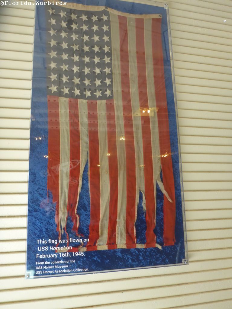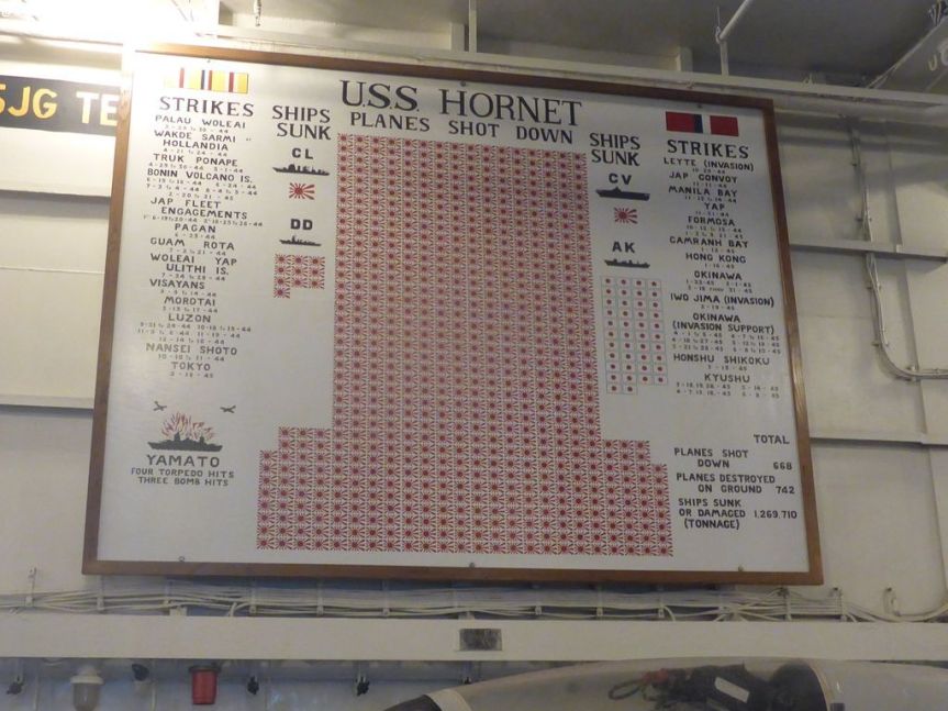 The USS Hornet was active with the space program as the recovery ship for Apollo 11 and Apollo 12. The foot prints of the astronauts are painted on the hangar floor.