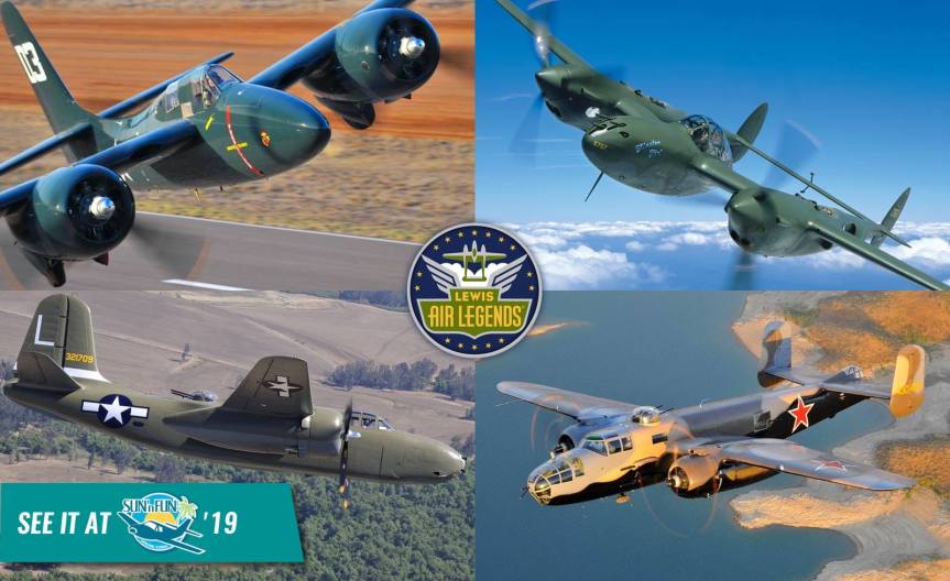 2019 Sun N Fun Warbird Airshow Performer Alert — Lewis Air Legends Lewis Air Legends will return to Sun N Fun 2019 again and are bringing P-38 “Glacier Girl”, an A-20 Havoc, a F7F Tigercat, and their B-25 Mitchell! Share this: Click to share on Facebook (Opens in new window) Facebook Click to share on X (Opens in new window) X Click to email a link to a friend (Opens in new window) Email Like Loading... Related