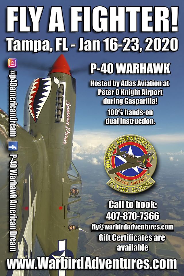 P-40 Warhawk “American Dream” at Peter O’Knight, 16-23 January P-40 Warhawk American Dream will be available for instruction flights from 16-23 January. Share this: Click to share on Facebook (Opens in new window) Facebook Click to share on X (Opens in new window) X Click to email a link to a friend (Opens in new window) Email Like Loading... Related