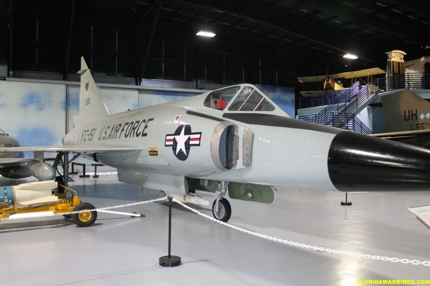 The F-102 on display, serial number 56-1151, was delivered to the USAF on 31 May 1957. It was originally assigned to the 48th Fighter Interceptor Squadron (FIS) at Langley AFB, Virginia. In March 1958 it was transferred to the 95th FIS at Andrews AFB, Maryland. It next went to Tyndall AFB, Florida, where it was assigned to the 4756th Air Defense Group. In 1970, 56-1151 was redesignated GF-102 and became an instructional airframe. Two years later, it was placed on static display at Lackland AFB, Texas, where it remained until it was moved to the Museum of Aviation in 2009.The aircraft on display was delivered to the USAF in September 1960. It served with the 318th and 48th Fighter Interceptor Squadrons during its service career before being retired in 1982. It was moved to the Museum for display in 1992.