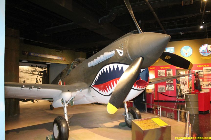 Respect in paid to Robert Lee Scott Jr., who lived in the local area, with a display of P-40 Warhawk in “Flying Tigers” colors with the kills associated with his becoming a fighter ace.