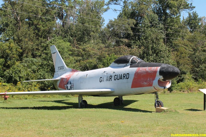 The aircraft on display, serial number 52-3651, came to the museum in April 2011. It is marked as an F-86L assigned to the 116th Fighter Interceptor Wing at Dobbins Air Force Base, Georgia, during the late-1950s. Delivered to the USAF in February 1954, the museum’s aircraft was first assigned to the 54th Fighter-Interceptor Squadron at Ellsworth AFB, South Dakota. It served with other Fighter-Interceptor squadrons before its final assignment to the 3350th Flying Training Wing at Moody AFB, Georgia. The aircraft was retired in July 1959.The museum’s F-86H Sabre, serial number 53-1511, was manufactured by North American Aviation at Columbus, Ohio, and was delivered to the USAF in March 1956. It served briefly with Air Training Command (ATC) and the Air Force Reserve before being assigned to the Maryland ANG in October 1957. It was retired from the 178th Tactical Fighter Group, Maryland ANG, in July 1970. It then served as an instructional aid at the Columbus Technical Institute in Columbus, Ohio. It was moved to the Museum of Aviation in 1983.