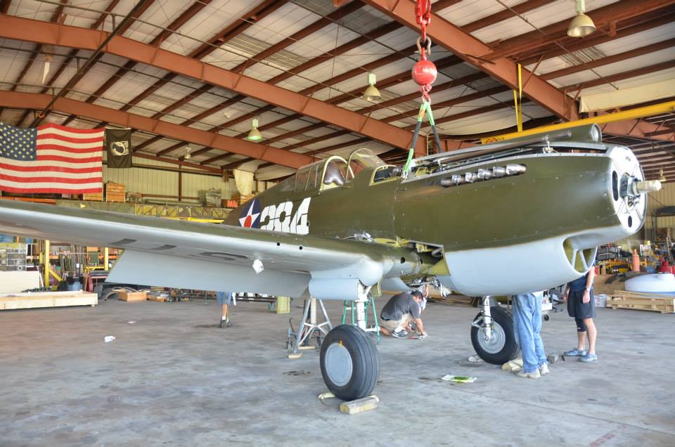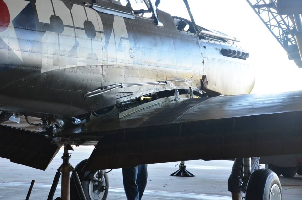 Gary Norville posted this picture of the Colling’s Foundation TF-51 Toulouse Nuts on the ramp at American Aero last week. Look closely for another aircraft in the background.