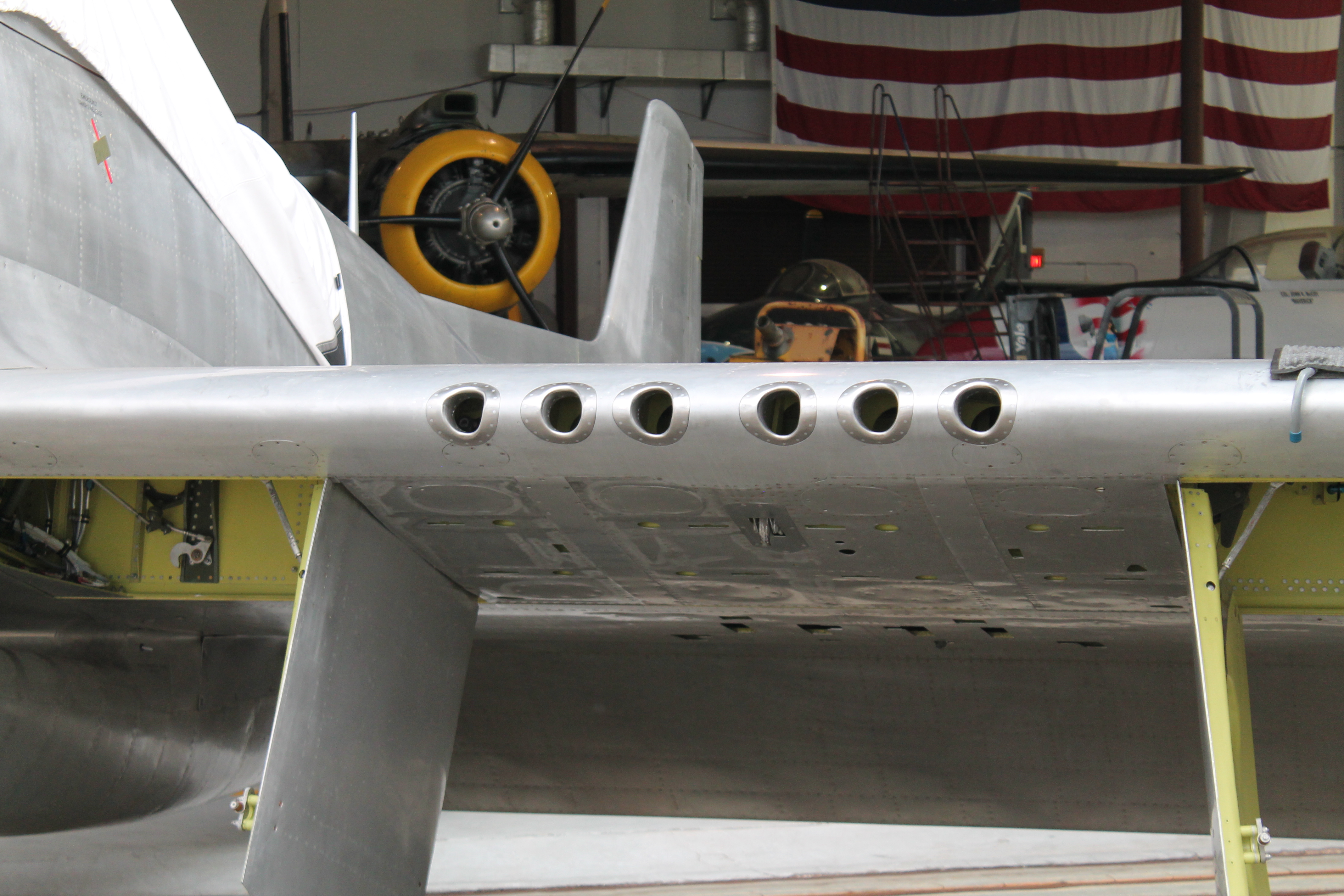 The National Naval Museum of Aviation has loaned the Valiant Air Command this Douglas SBD-5 Dauntless. This aircraft ditched in Lake Michigan in 1944 will trying to land on the carrier Wolverine. It sat at the bottom of the lake until recovered in 2009. Restored by the museum afterwards, but still retains some original skin.
