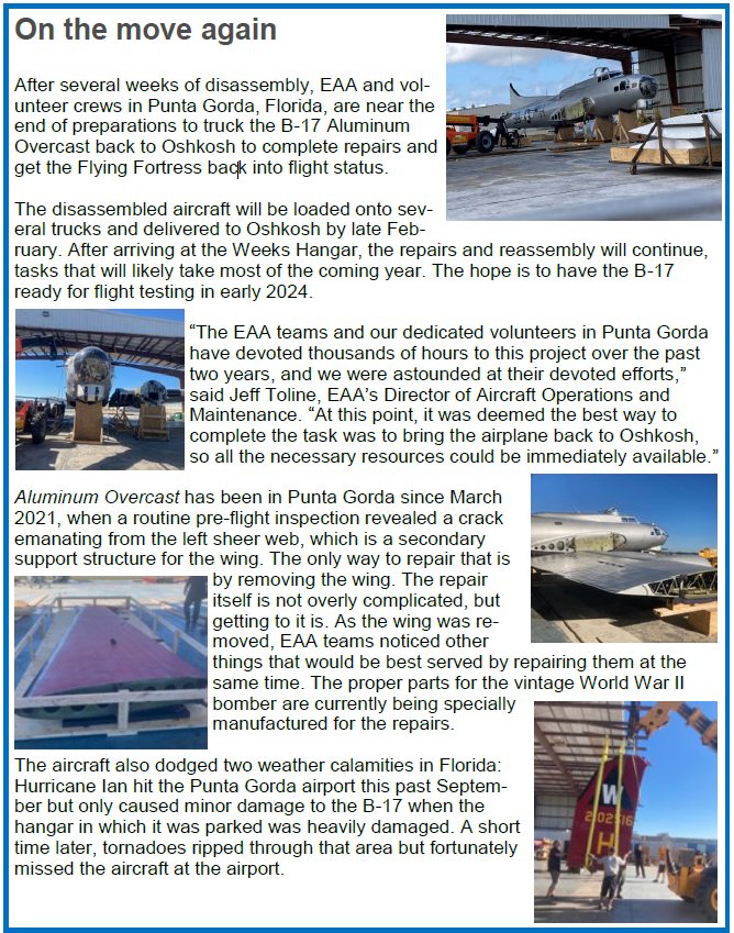 The EAA’s B-17 “Aluminum Overcast”, which is still in South Florida posted this update.